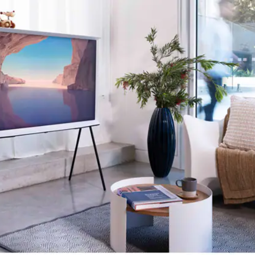The Serif is a unique Samsung Smart TV that stands out with its distinctive, stylish design. It has a 360-degree aesthetic with a sleek, modern look that can complement any room decor. Perfect for those who want a TV that blends functionality with a touch of elegance, The Serif enhances both your viewing experience and your living space.