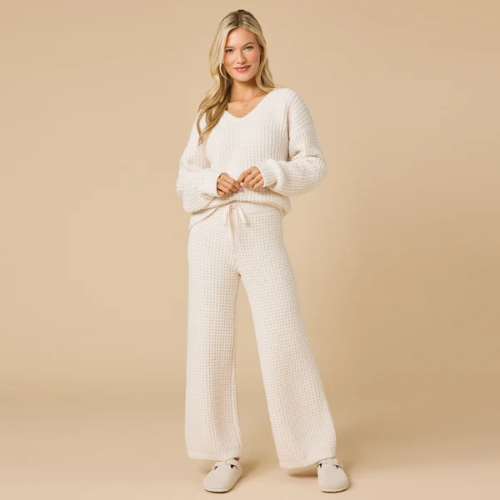 Waffle Marshmallow V-Neck Luxe Lounge Set